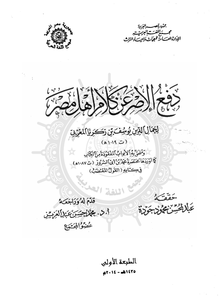 من أهم الكتب التي تناولت اللهجات العامية المصرية وعلاقتها باللغة العربية في عصر العثمانيين هو كتاب (دفع الإصر عن كلام أهل مصر) والذي كتبه الأديب والشاعر جمال الدين أبو المحاسن يوسف بن زكريا بن الحربي المغربي المتوفي في القاهرة عام 1019 هـ / 1611 م ، وقد تناول فيه آلاف المفردات العامية وبحث في أصلها اللغوي ومن أشهرها كلمات صابون وطابونة وضاني وعربون وفنجان وزبون ونني ورزمة وعباية والنواتية ولبان وبجم وكذلك بعض الأفعال مثل استنى بمعنى انتظر وخبى بمعنى أخفى وهري بمعني استهلك وكركر بمعنى ضحك.